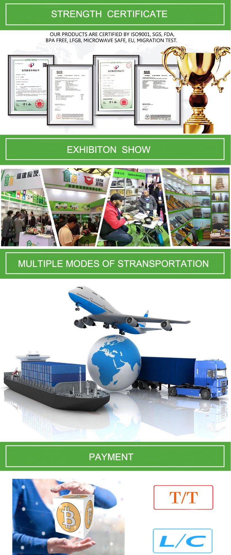 Eco-friendly, Refrigerated & Microwavable -20℃~100℃ safe |