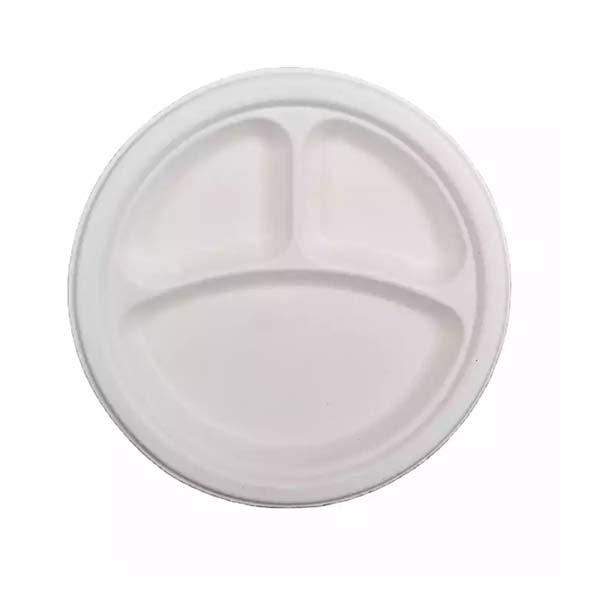 disposable sugarcane plates. These plates have 3 compartments which is perfect for portion